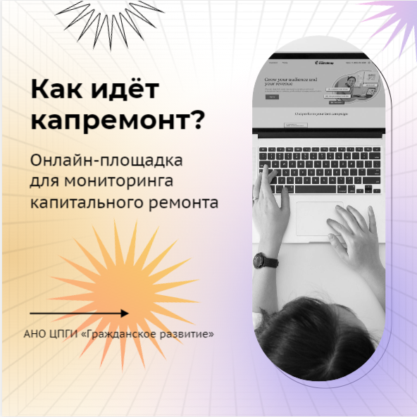 В рамках проекта «Корпус молодых общественных помощников в капитальном ремонте» разрабатывается онлайн-ресурс, на котором будут размещены результаты мониторинга капитального ремонта многоквартирных домов в Москве. Проект реализуется АНО ЦПГИ «Гражданское развитие» при поддержке, предоставленной Комитетом общественных связей и молодежной политики города Москвы. Проверочные мероприятия проведут студенты вузов и ссузов столицы, которые ранее принимали участие в семинарах по проекту.